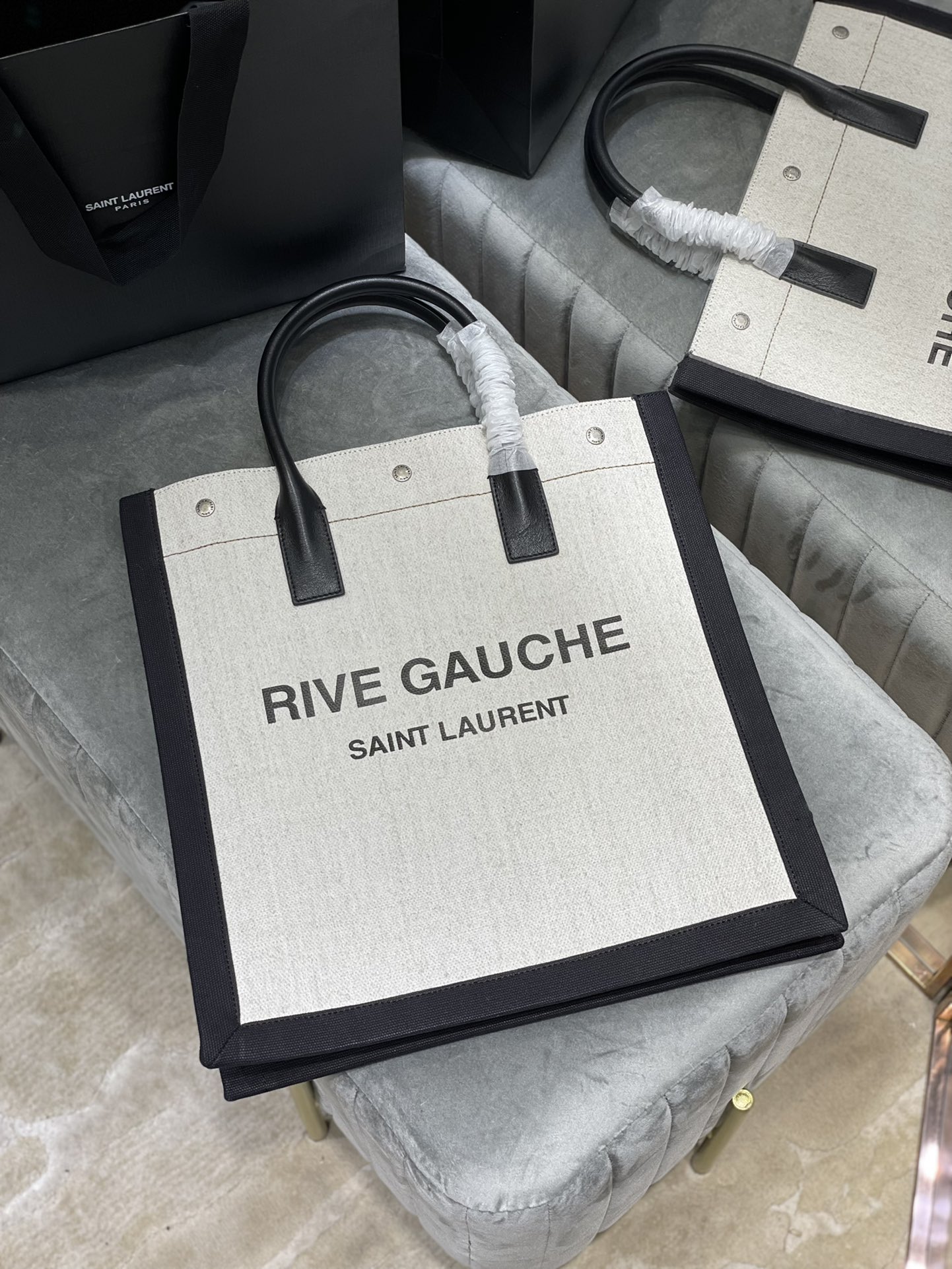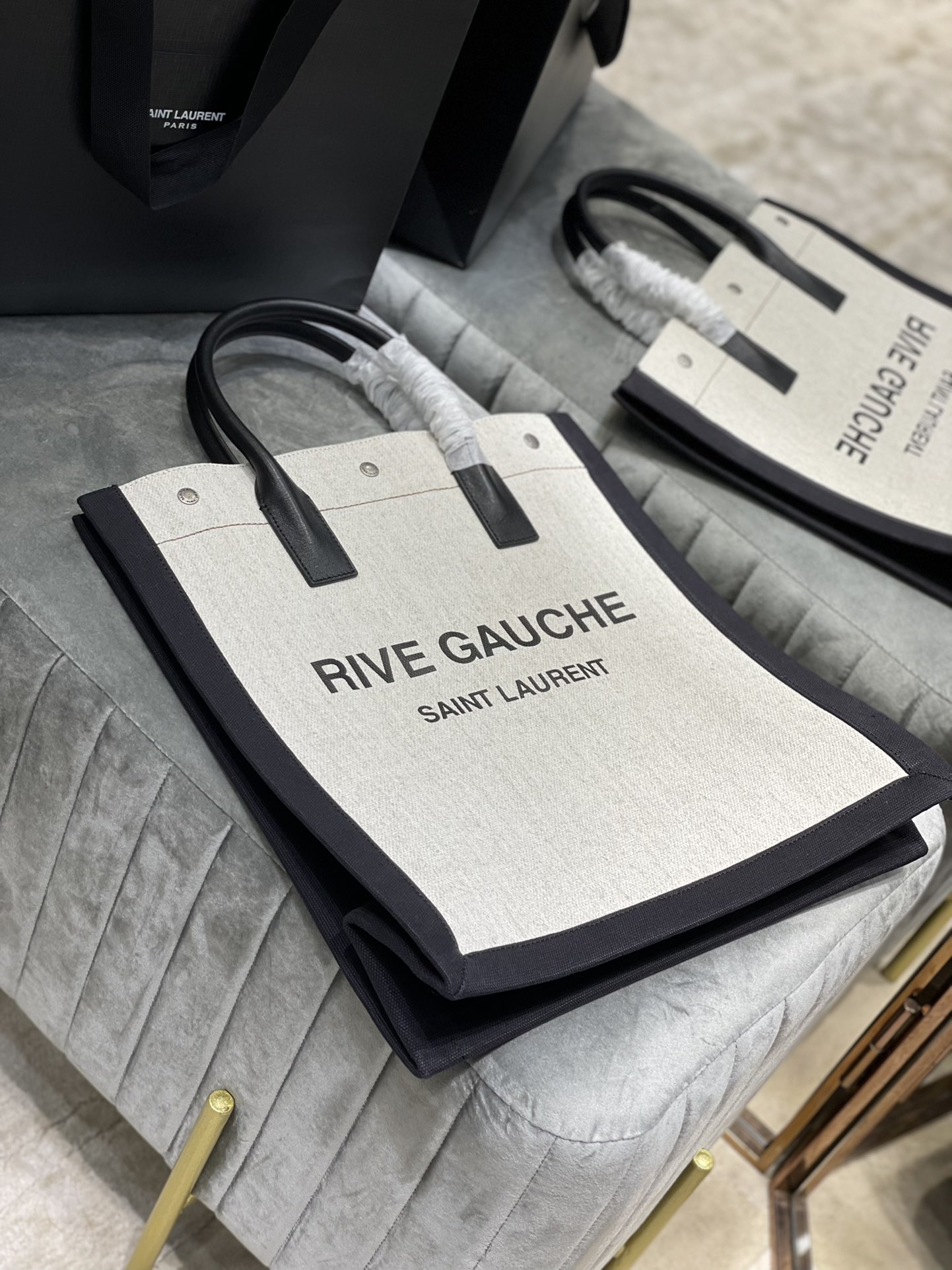 Yves Saint Laurent Rive Gauche North/South Tote Bag In Printed Linen For Women 15.3in/39cm YSL 632539FAABR9083