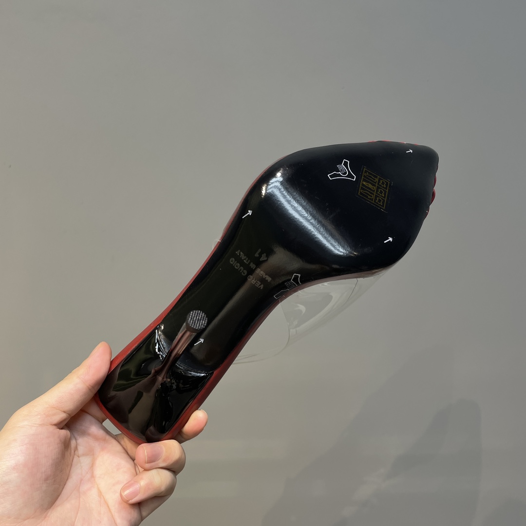 Slingback pumps with a stiletto heel and elasticized slingback strap, featuring a long pointed toe with a draped detail.