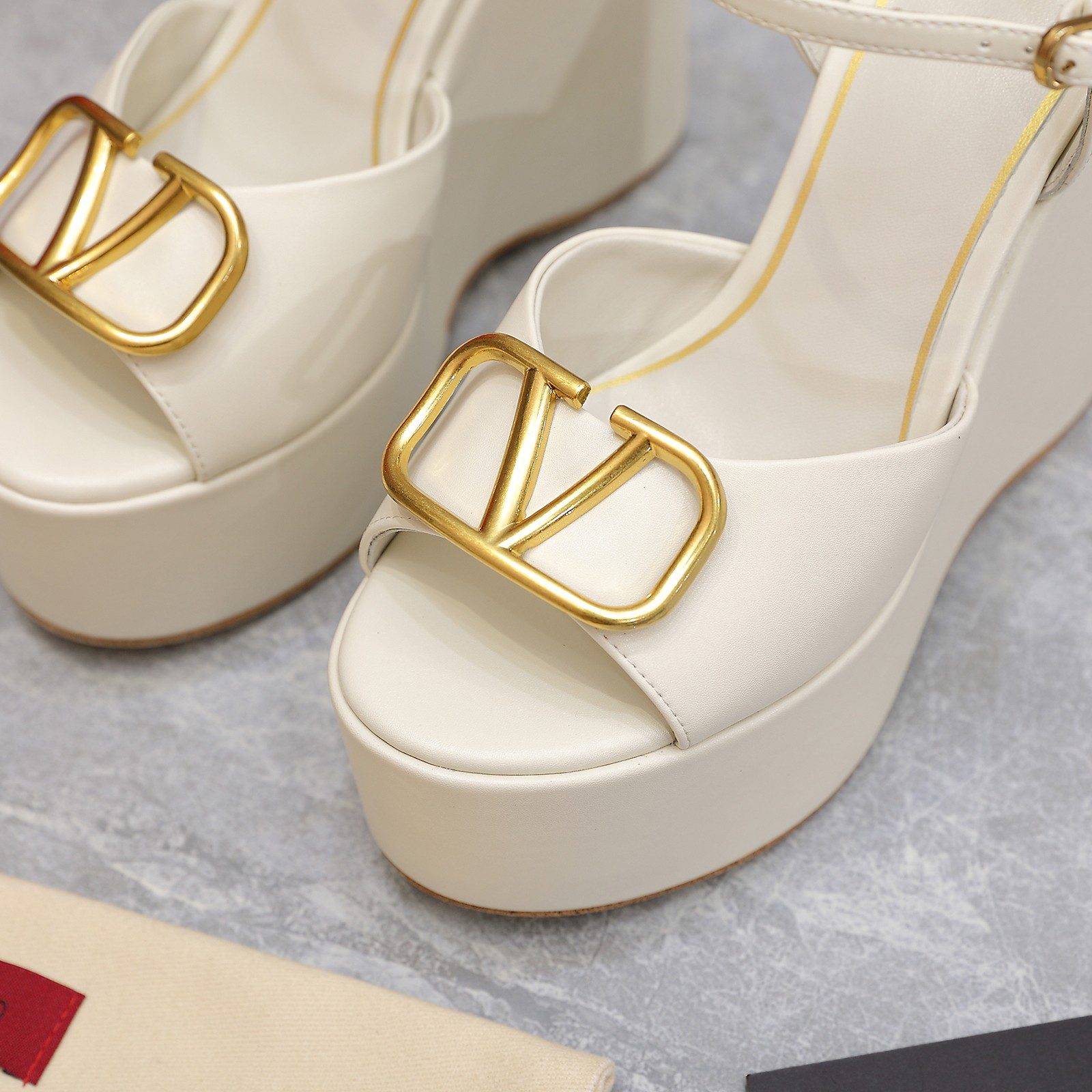 Creamy VLogo Signature sandals look neutral enough to support both a bright and understated look, but at the same time they are not without personality. It’s all about the wide sculpted wedge, visually lengthening the legs, and a large golden VLogo buckle on the vamp. For the production of a model from the spring-summer collection of the brand, founded by VLNTN GRVN, smooth soft was used.