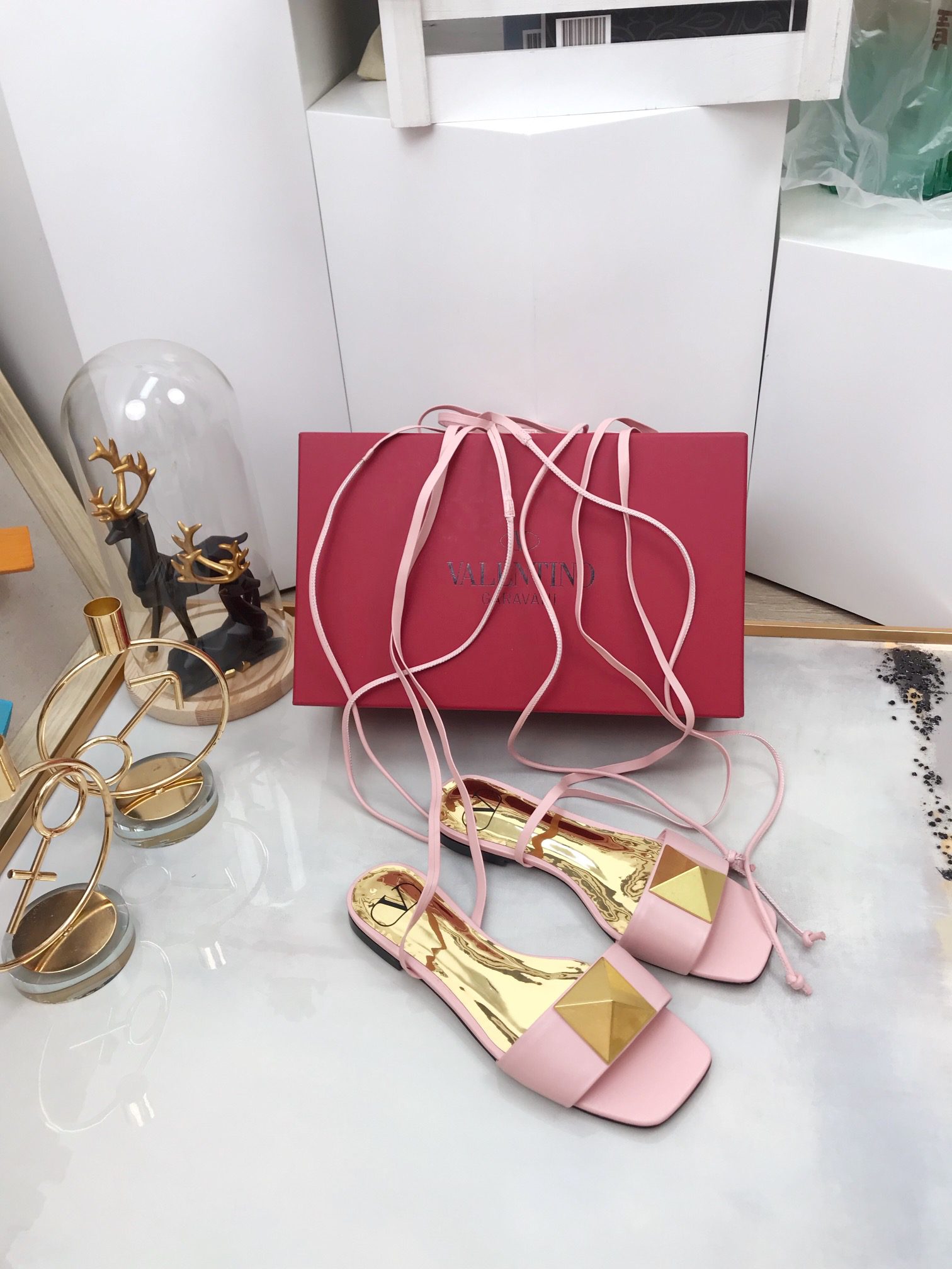 Valentino Garavani One Stud Gladiator Flat Sandals Light Pink For Women WS0EK9CYI