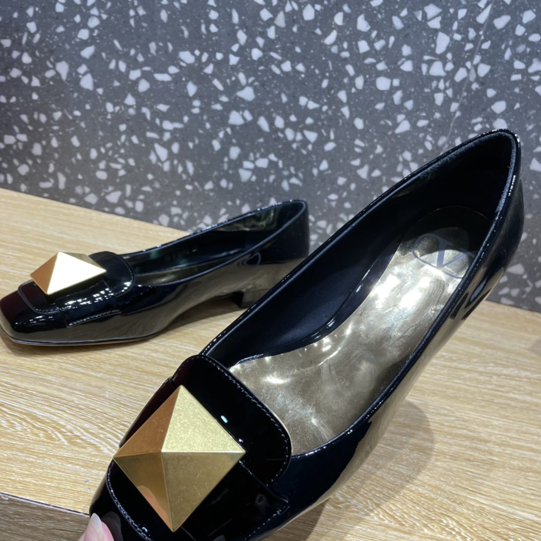 Fit for every occasion are Valentino’s One Stud ballerinas, made from patent . They feature the iconic platinum-plated stud atop classic rounded toes.