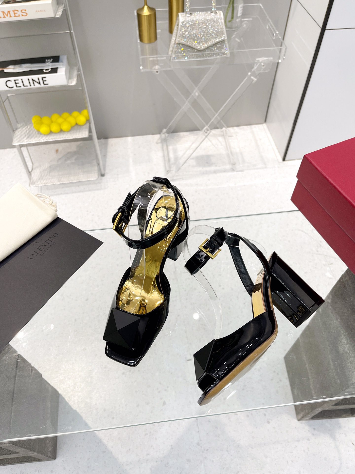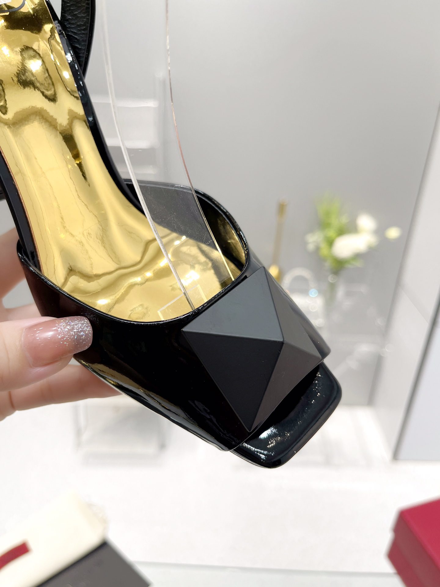 Valentino Garavani One Stud Sandal With Maxi Stud Embellishment Shiny Black For Women XW0S0EI6CYII16