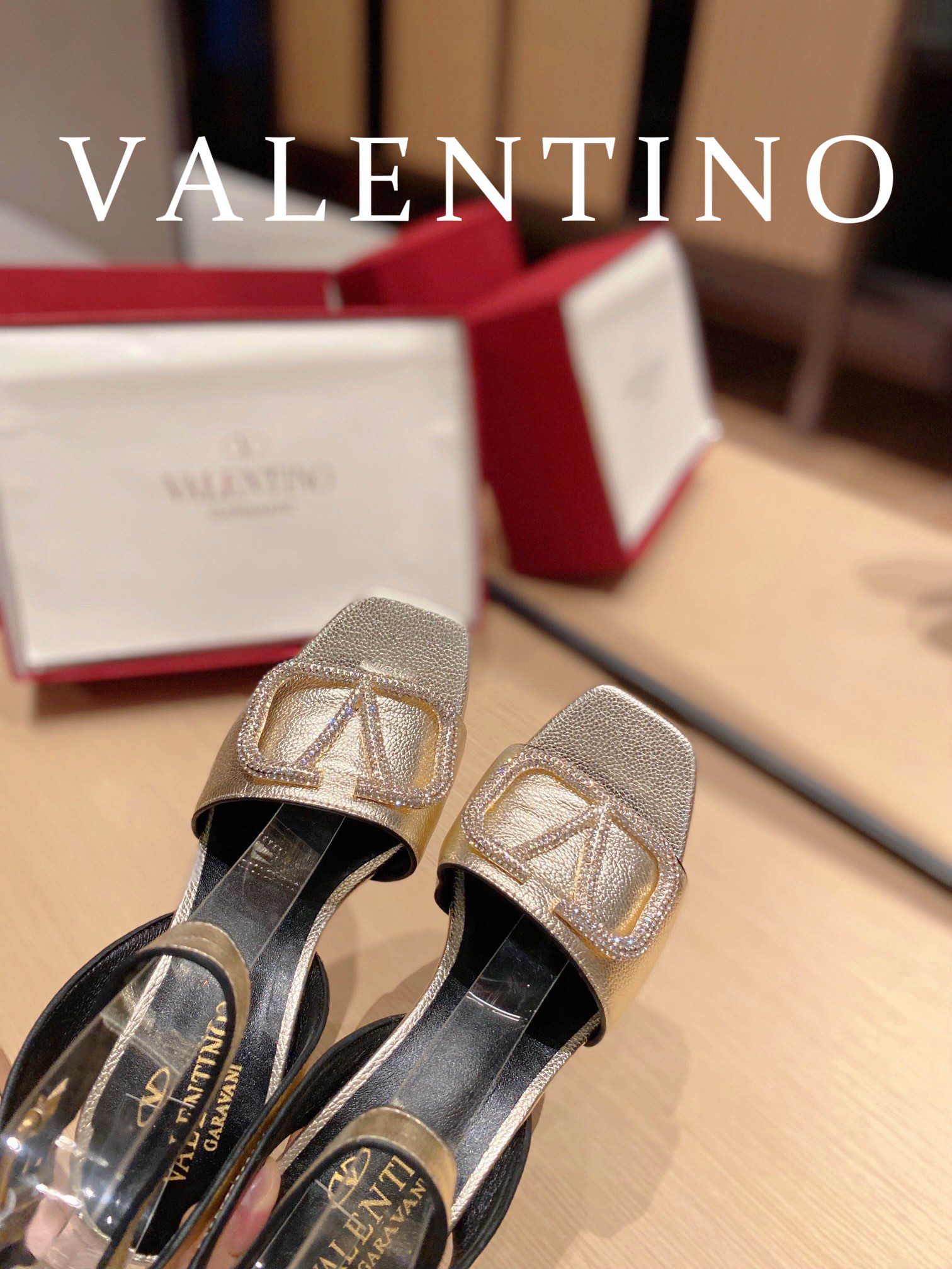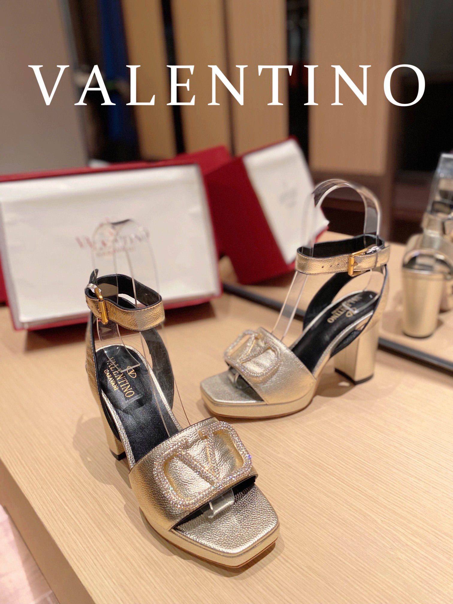 • Valentino Garavani Strap Heeled Sandals With V Logo Crystal Embellishment Gold For Women