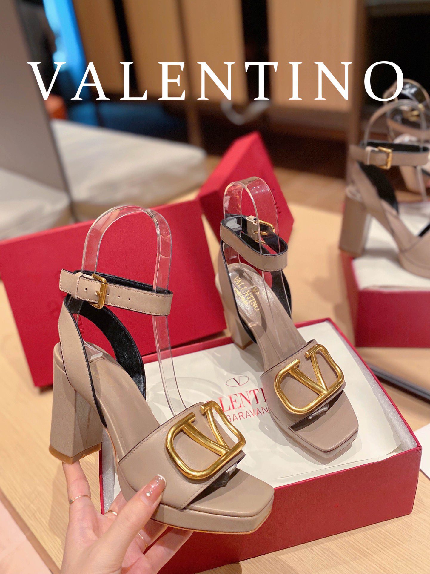 • Valentino Garavani Strap Heeled Sandals With V Logo Signature Embellishment Beige For Women