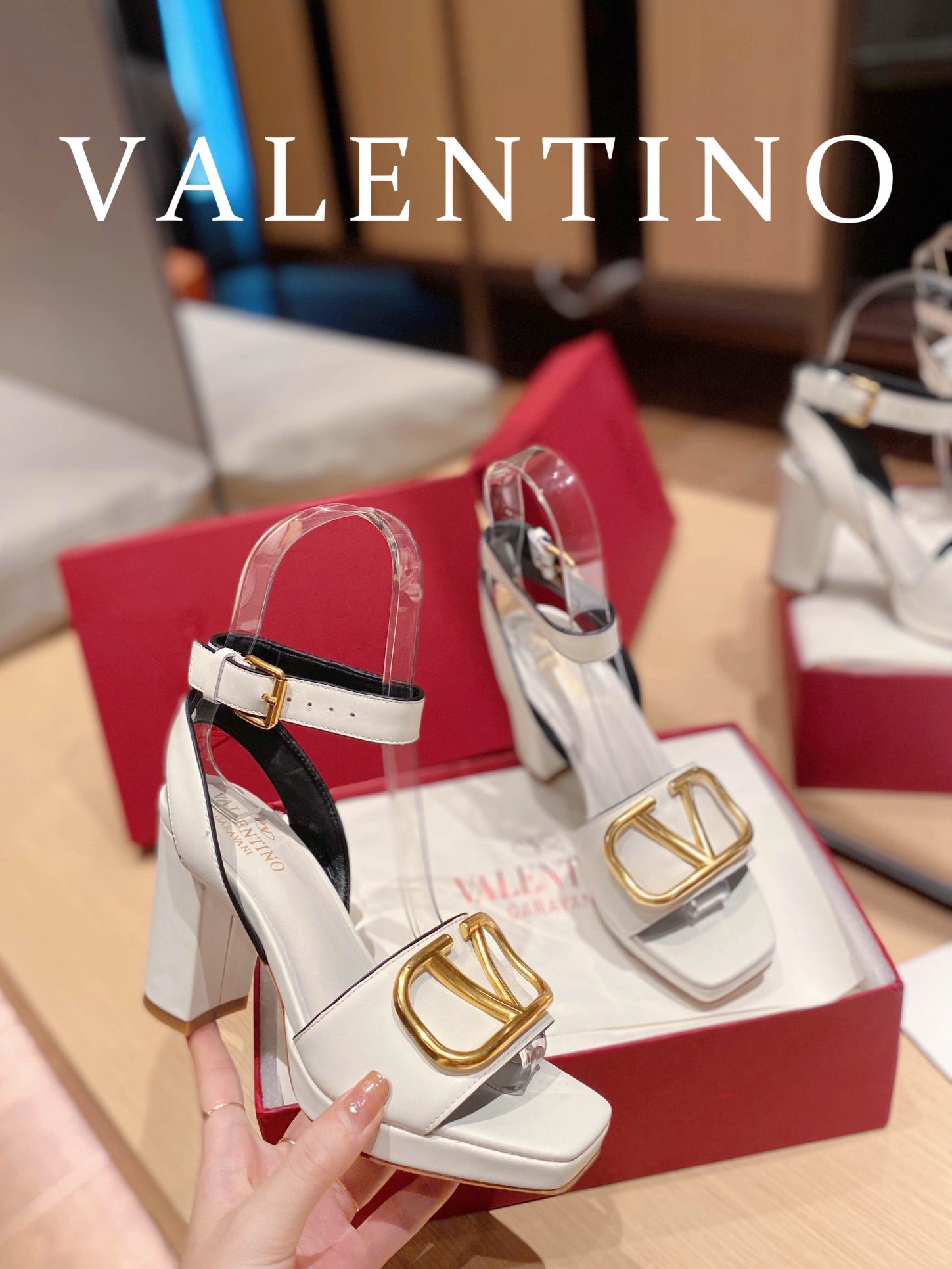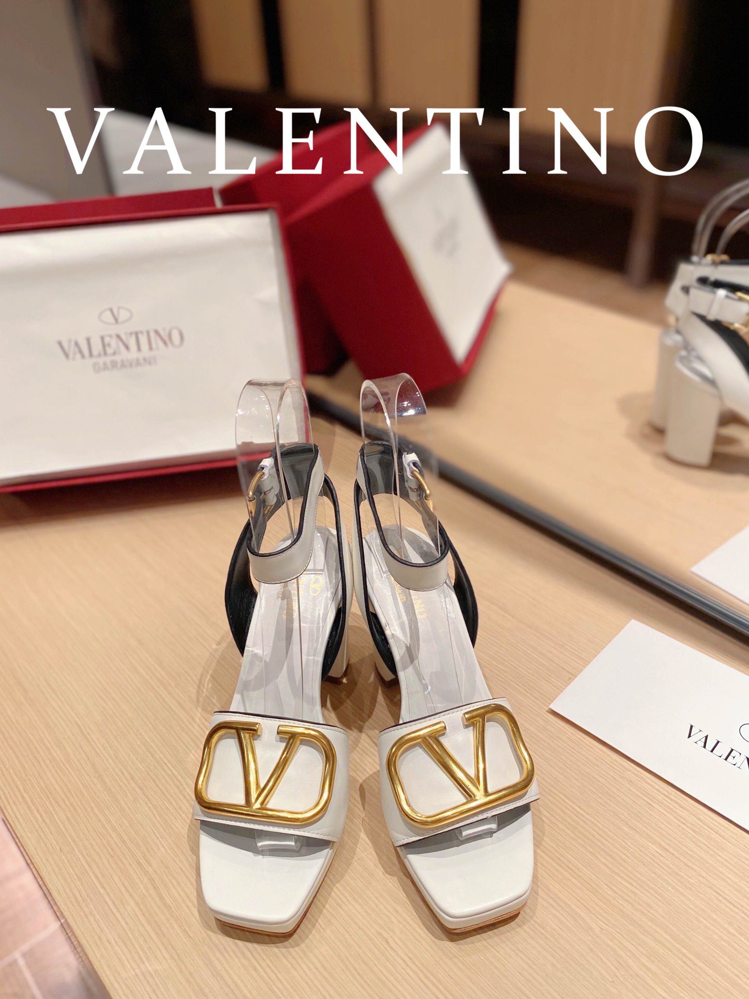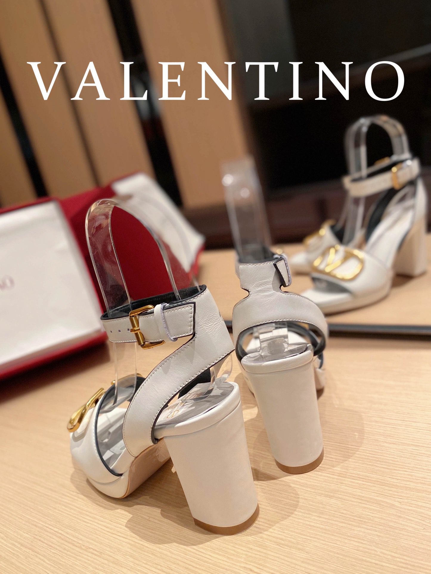 • Valentino Garavani Strap Heeled Sandals With V Logo Signature Embellishment White For Women